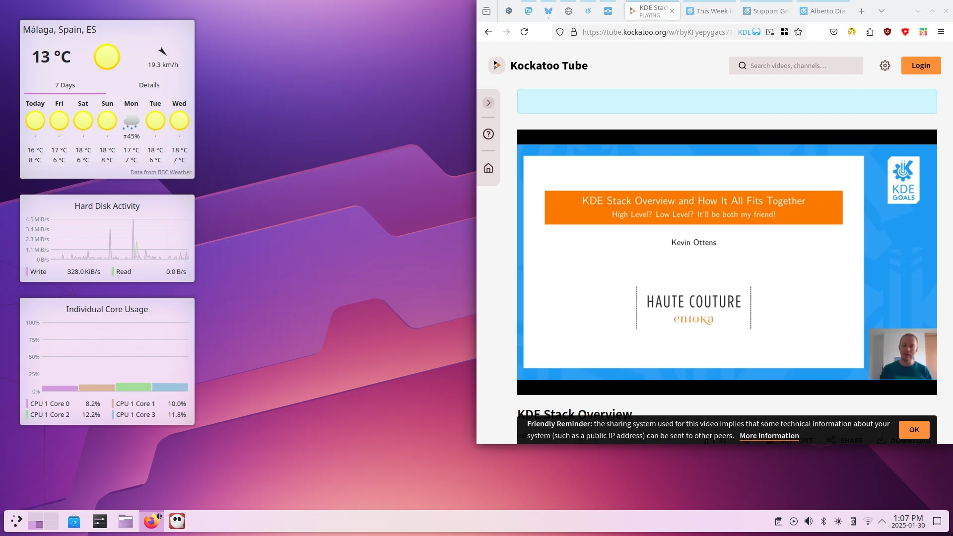 Si GNOME busca lo minimalista, KDE Plasma es lo contrario: libertad total. Podés modificar prácticamente cualquier detalle, desde los iconos hasta el comportamiento de ventanas, el menú, los paneles y más.