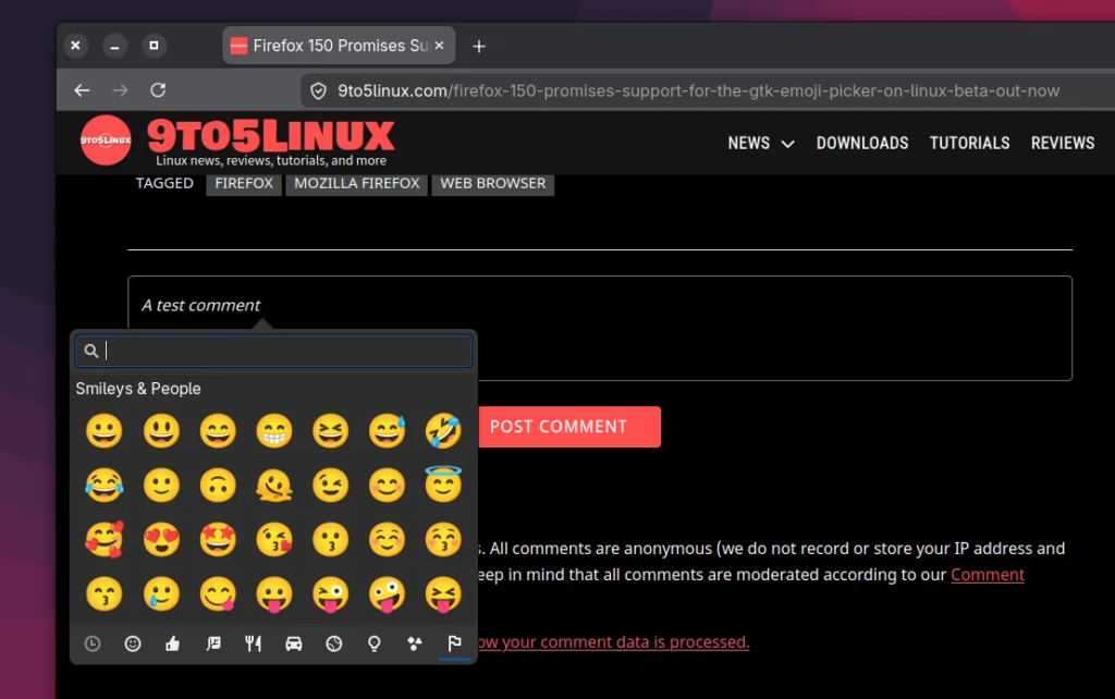 Una de las novedades más interesantes de Firefox 150 es el soporte para el selector de emojis de GTK, una funcionalidad que ya utilizan muchas aplicaciones modernas en Linux.