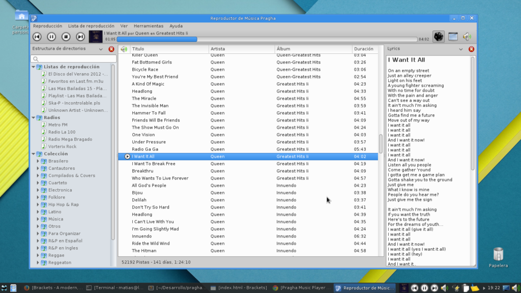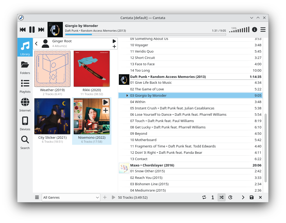 Cliente gráfico para MPD (Music Player Daemon). Cantata Ideal para quienes quieren reproducir música en segundo plano y tener control remoto.
