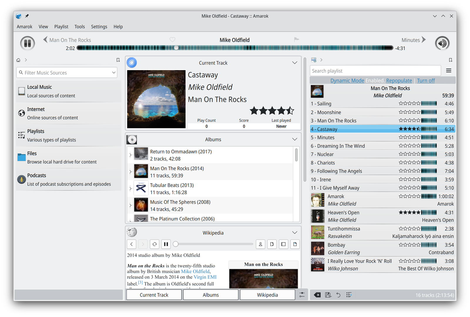 Amarok es un clásico entre los reproductores KDE, con infinidad de opciones de biblioteca y soporte para servicios online.