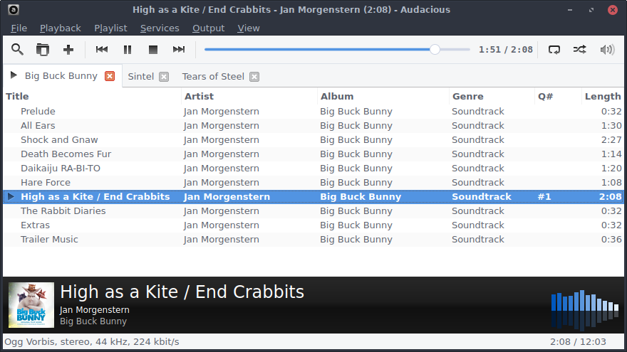 Audacious es un reproductor muy ligero inspirado en Winamp. Perfecto para equipos antiguos o para quienes quieren velocidad y simplicidad.