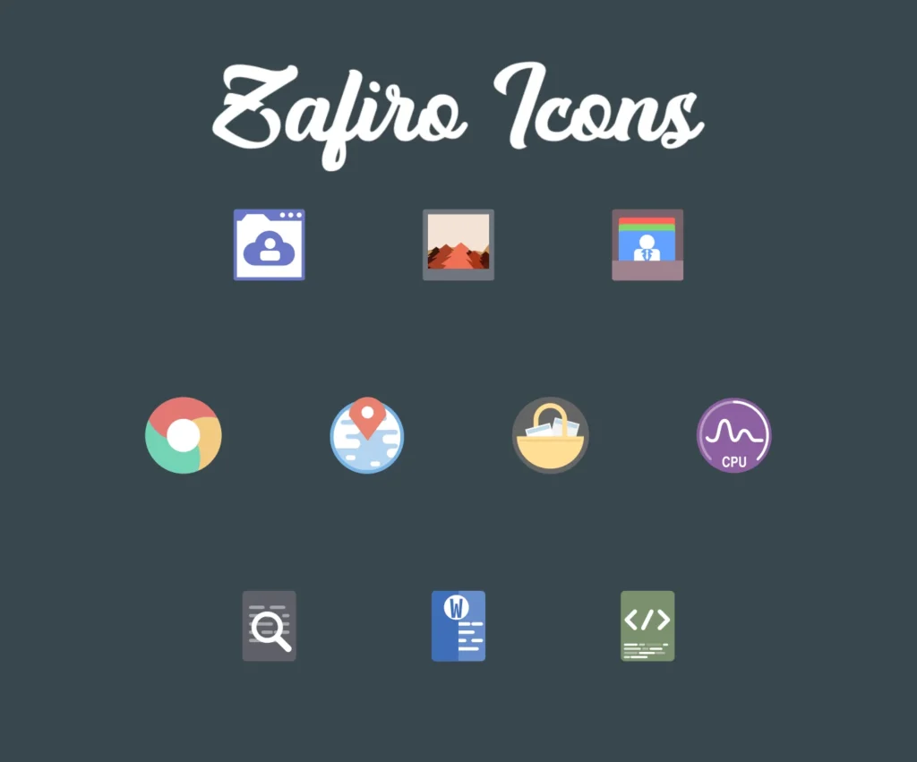 Zafiro se caracteriza por iconos minimalistas, simples y elegantes. Su diseño vectorial plano es perfecto para escritorios ordenados y sin distracciones.