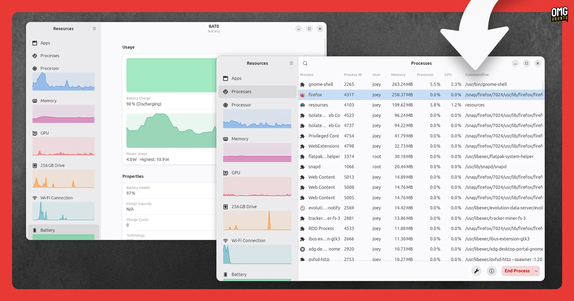- Resources será la nueva herramienta para visualizar procesos y consumo del sistema, tomando el lugar del histórico GNOME System Monitor.